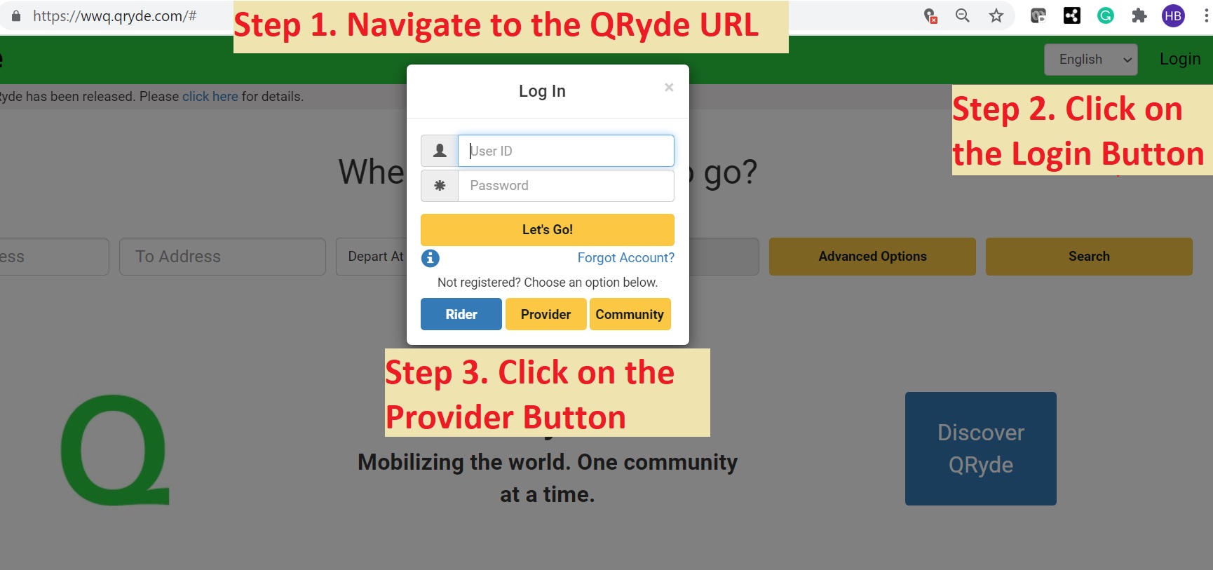 Your drivers can download the QRyde Driver app. You can login to the QRyde portal and navigate to the