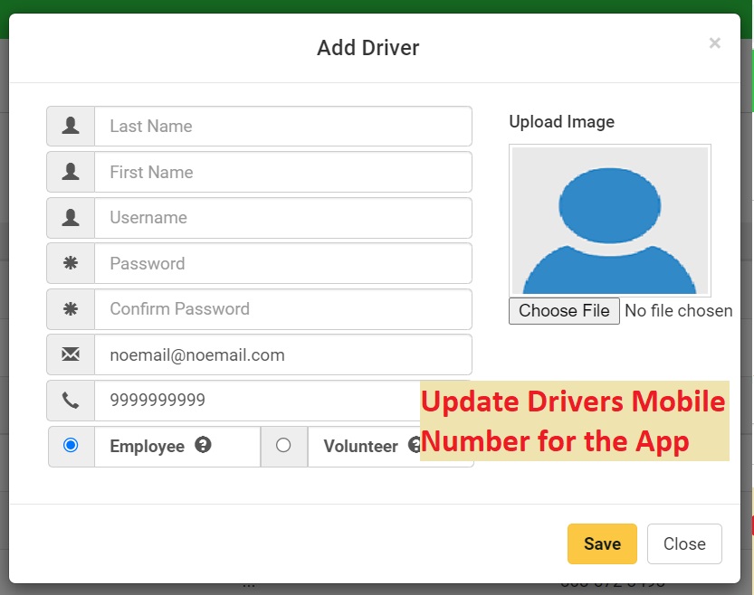 Username column. Your drivers will use these to logon to the Driver app. To add a new driver, click on the 'Add New' button and complete the information.